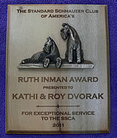 We are estatic to receive the Standard Schnauzer Club of America's Ruth Inman Award for 2011!